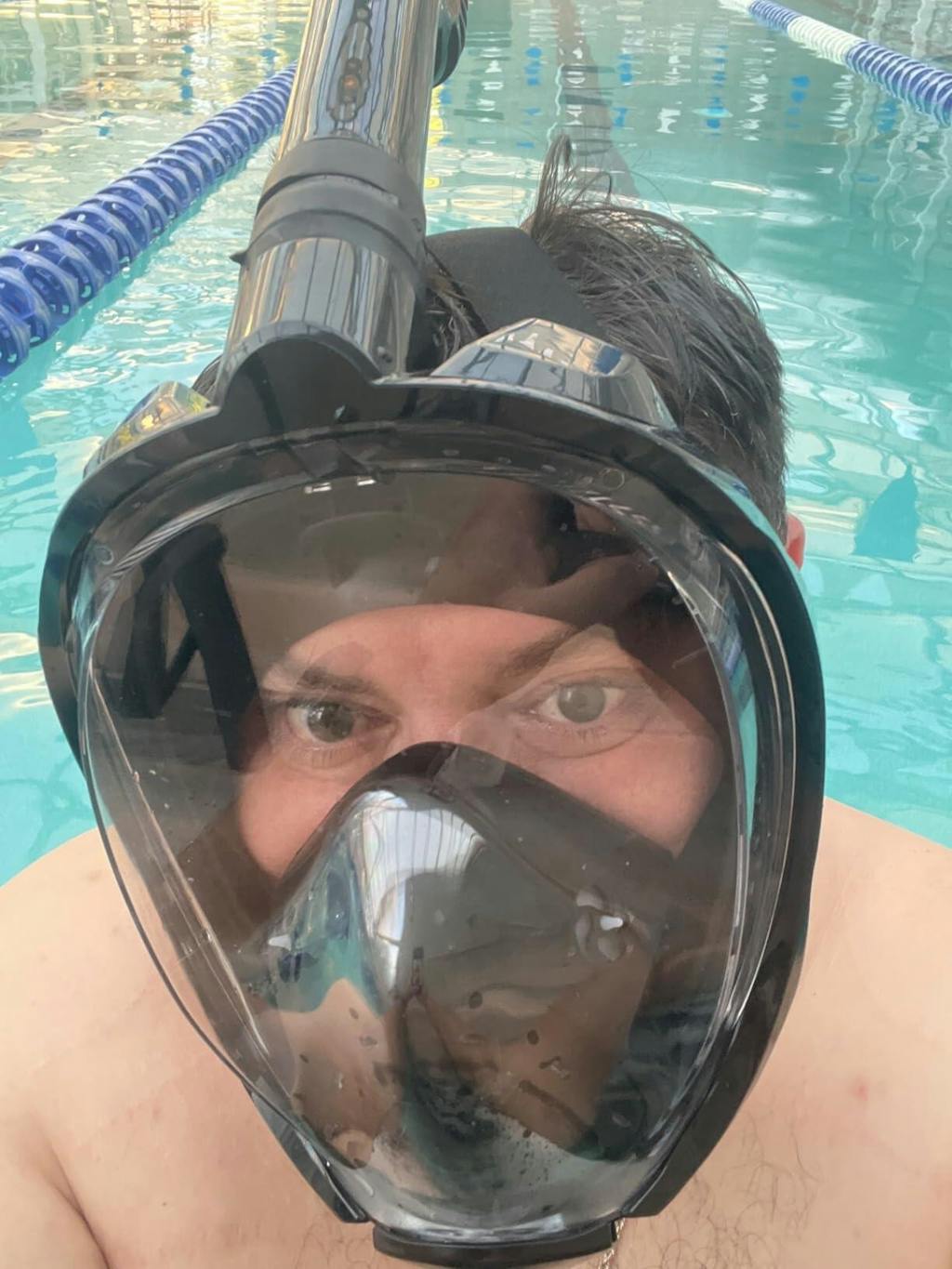 Floating ball goes up and blocks the air inlet, that prevents water from entering the mask.