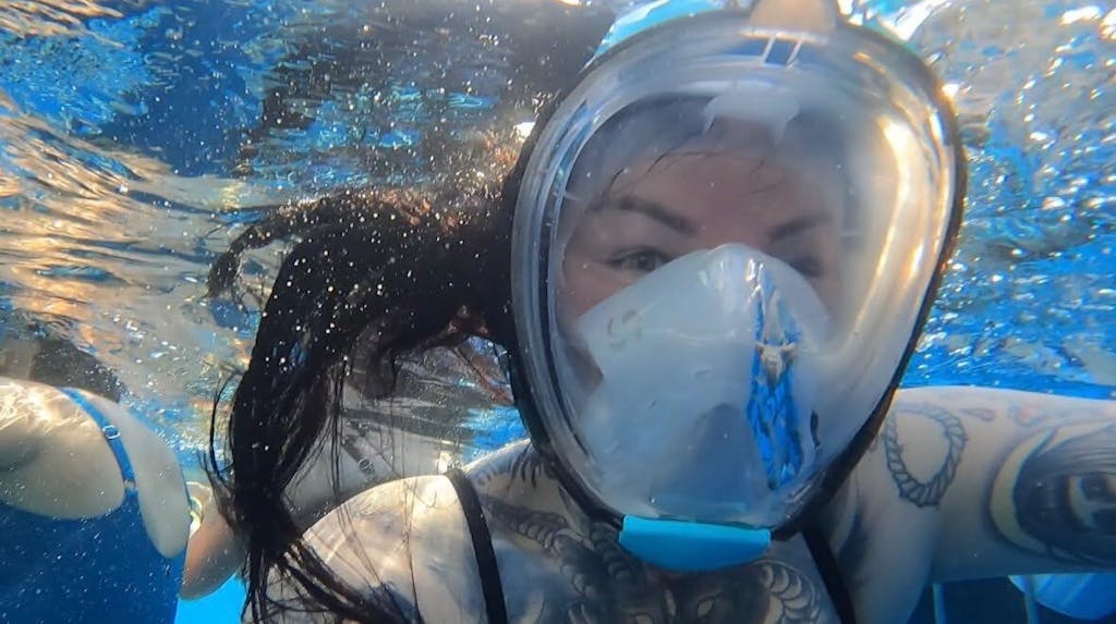 Our full face snorkel mask features clear, flat lenses that won't distort your view underwater, eliminating any dizziness or discomfort.