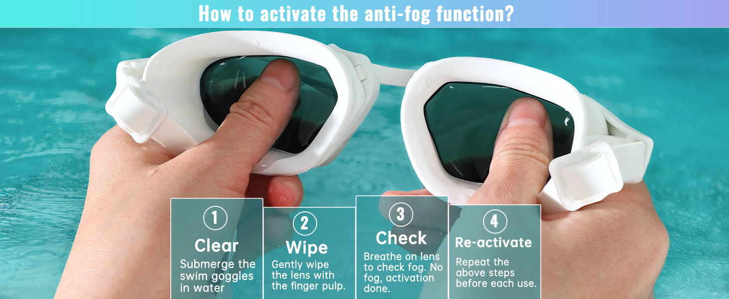 - 【Easily Activate Anti-fog Function】You can activate anti-fog function by gently wiping the inner lens 5 - 10 times in water with the finger pulp (avoid using fingernails).