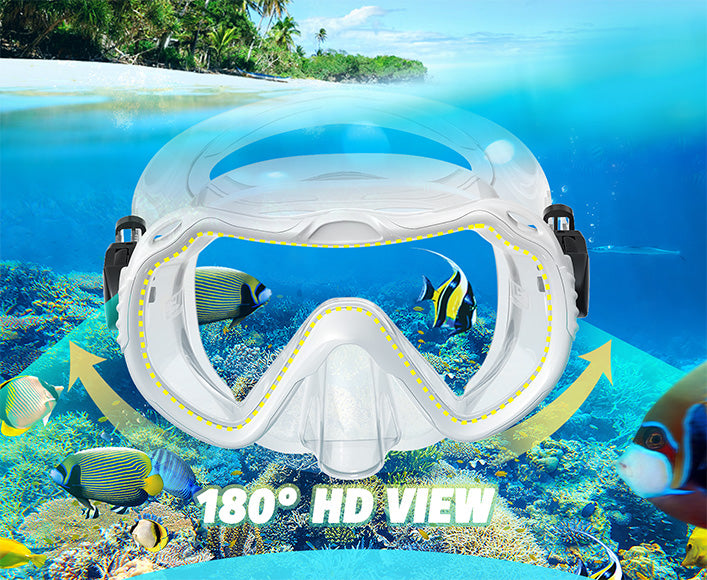 Scuba Diving Mask is made from soft transparent or food-grade silicone,and comes with great comfort,The skirt of healthy materials won't make your face allergic,and it's easy to clean after use,especially suitable for long-term use in free diving,without feeling uncomfortable.