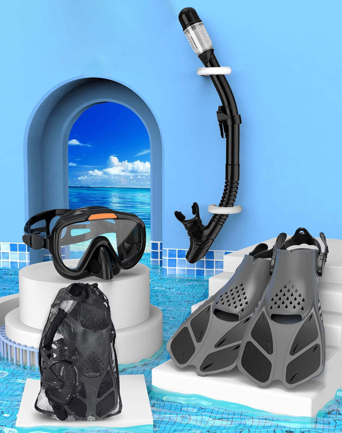 Tempered glass lenses + anti fog coating, the snorkel goggles give you a cystal view. There is no obstruction between eyes with the single window design. Tempered glass lens offers greater protection for eyes.