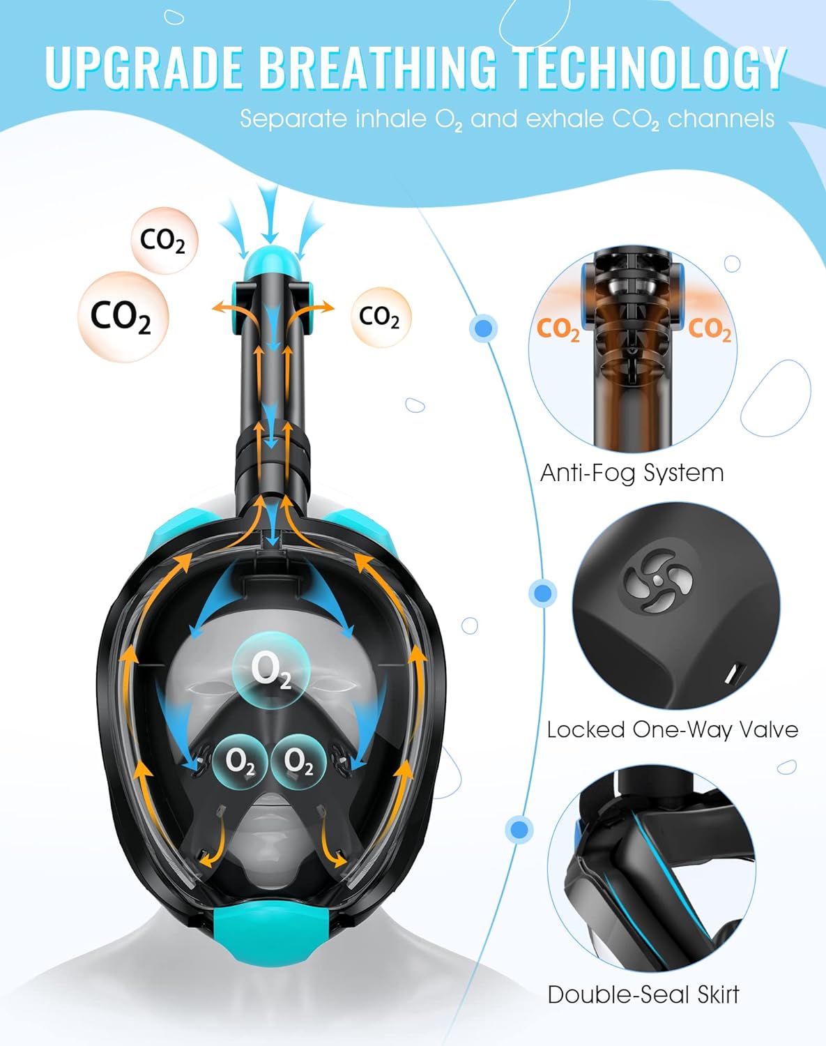 Our full face snorkel mask features clear, flat lenses that won't distort your view underwater, eliminating any dizziness or discomfort.