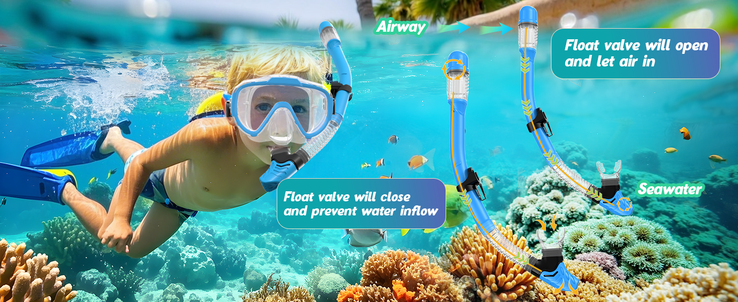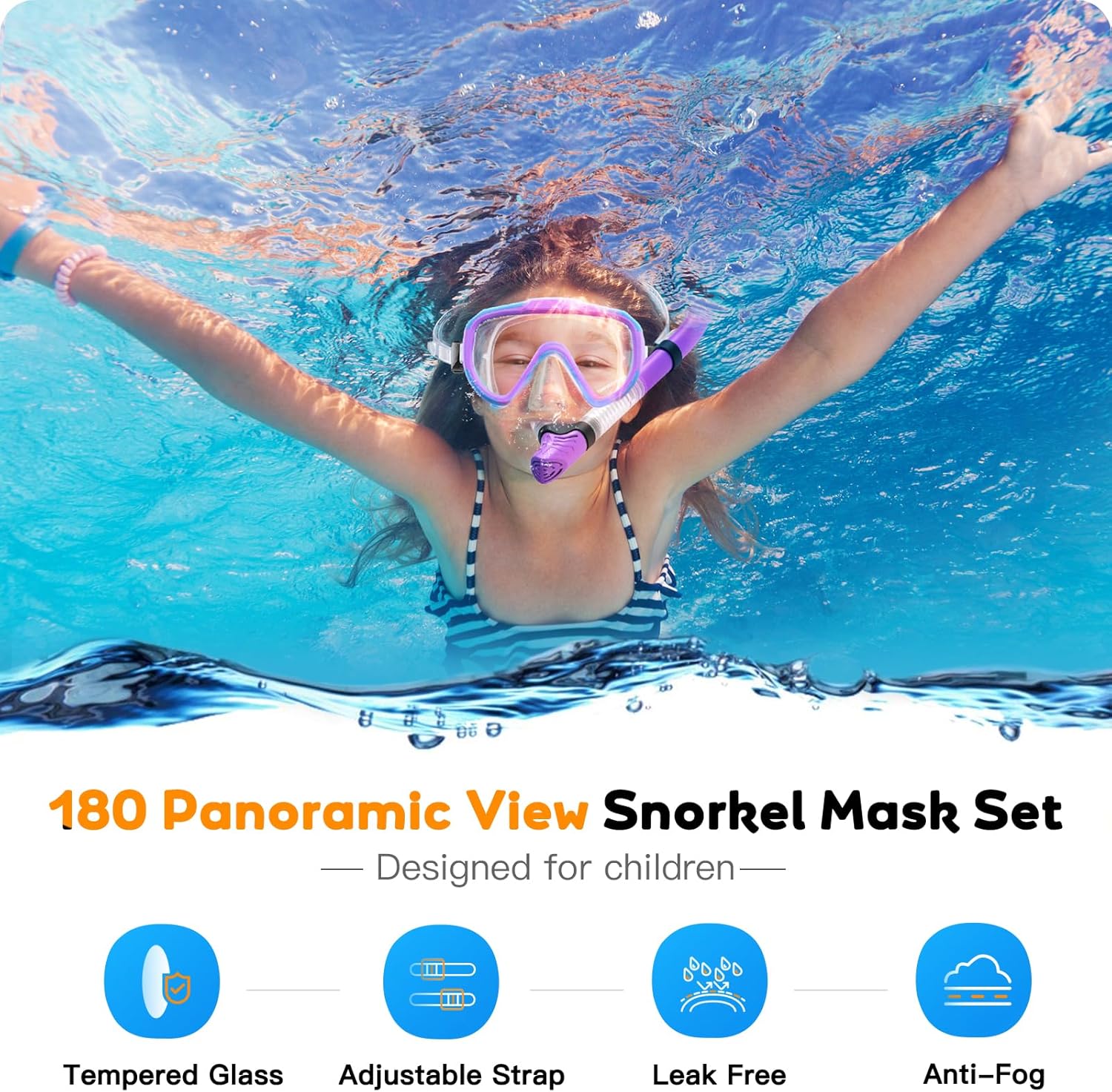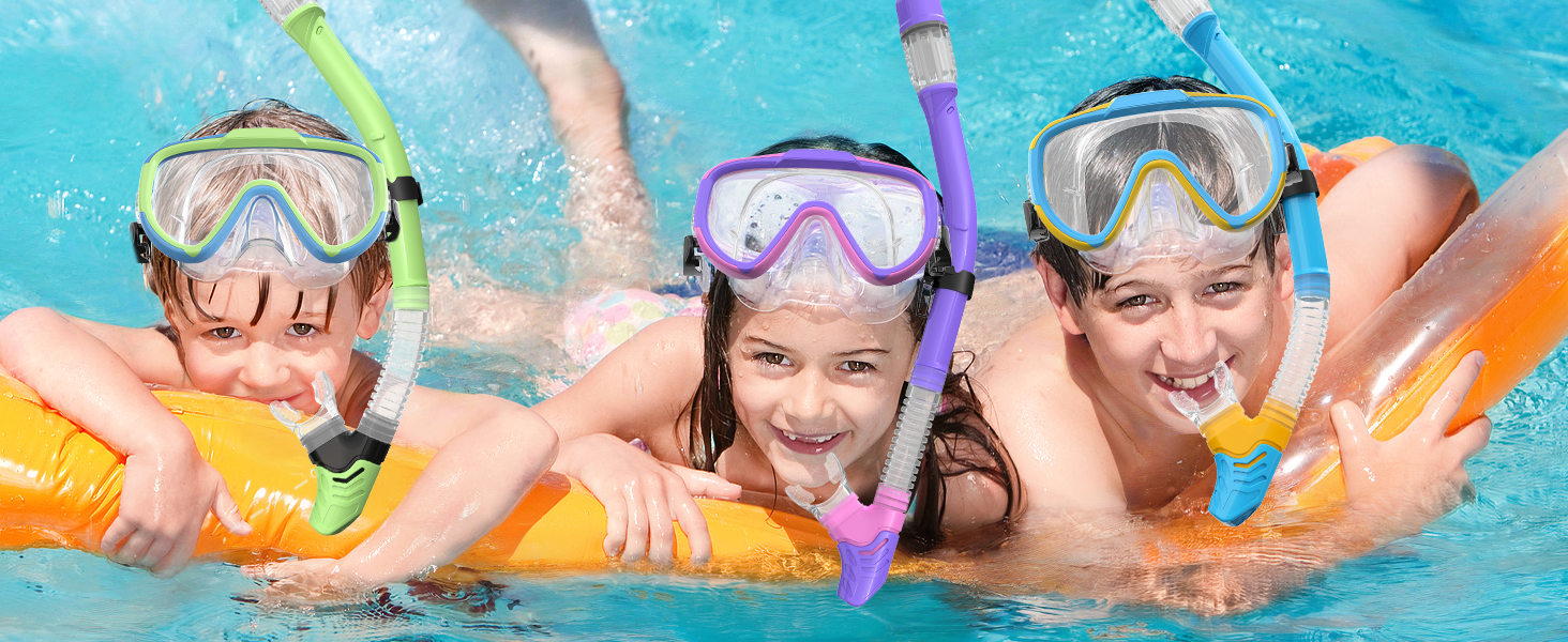 This snorkel goggle use (was upgraded with) scratch-resistant tempered glass lenses which gives extraordinary durability. With anti-fog coating, these diving masks offer an crystal clear unobstructed 180° panoramic view, allowing your kids to explore the breathtaking beauty of the underwater realm.