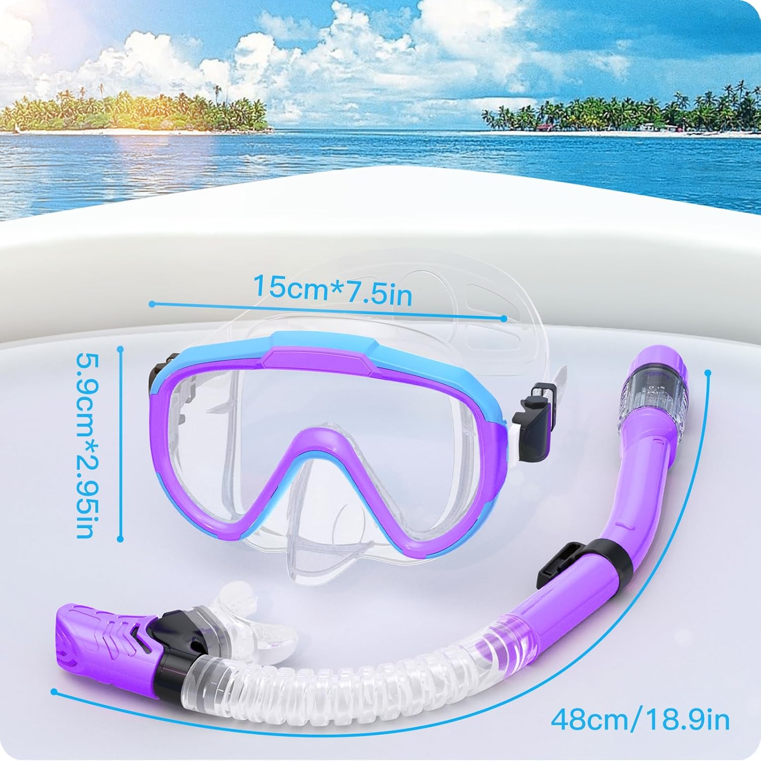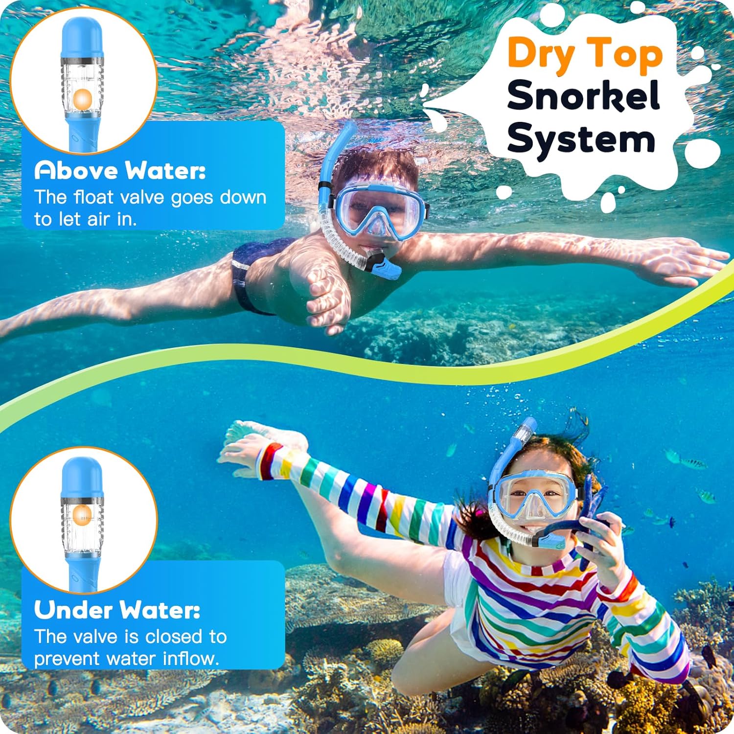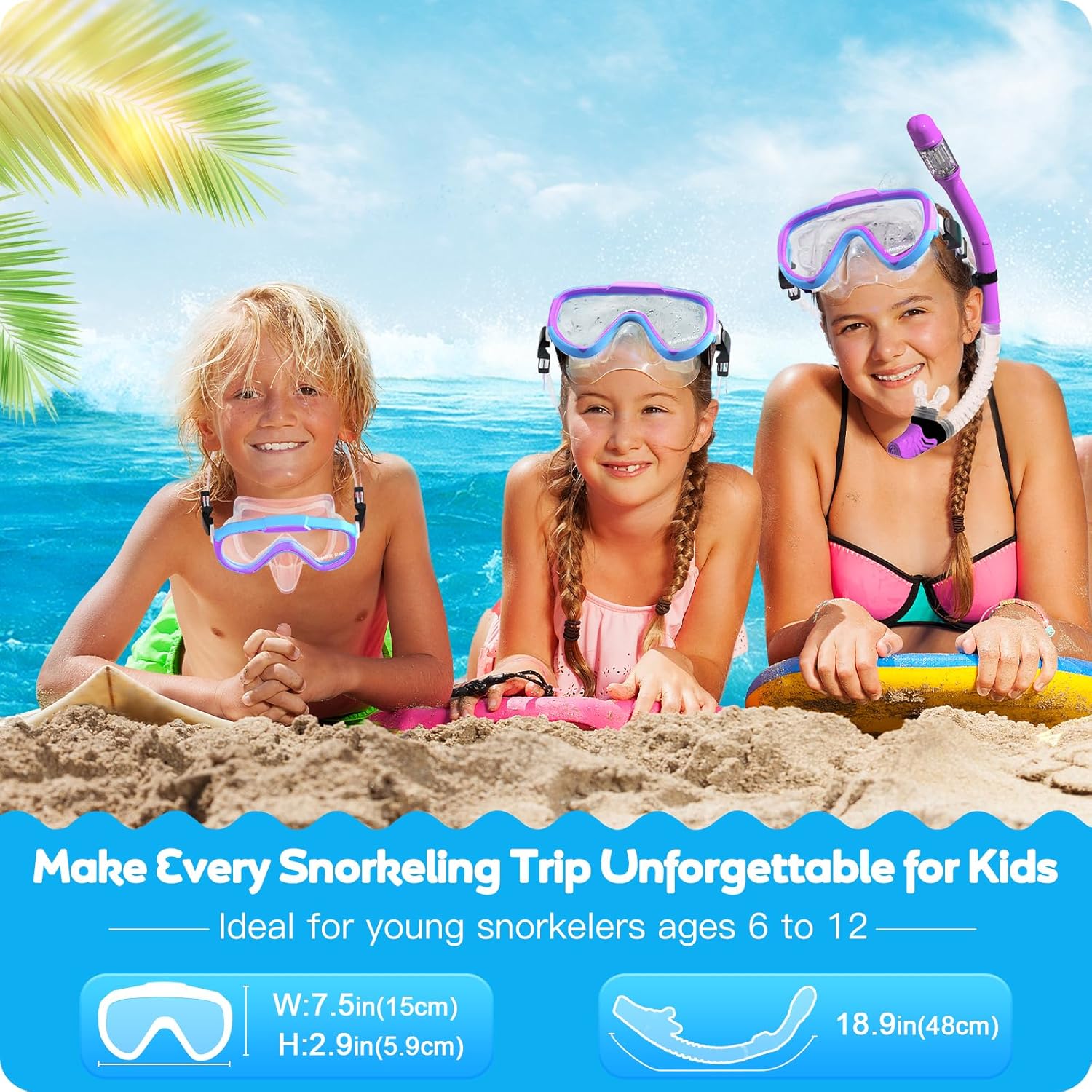 This snorkel goggle use (was upgraded with) scratch-resistant tempered glass lenses which gives extraordinary durability. With anti-fog coating, these diving masks offer an crystal clear unobstructed 180° panoramic view, allowing your kids to explore the breathtaking beauty of the underwater realm.