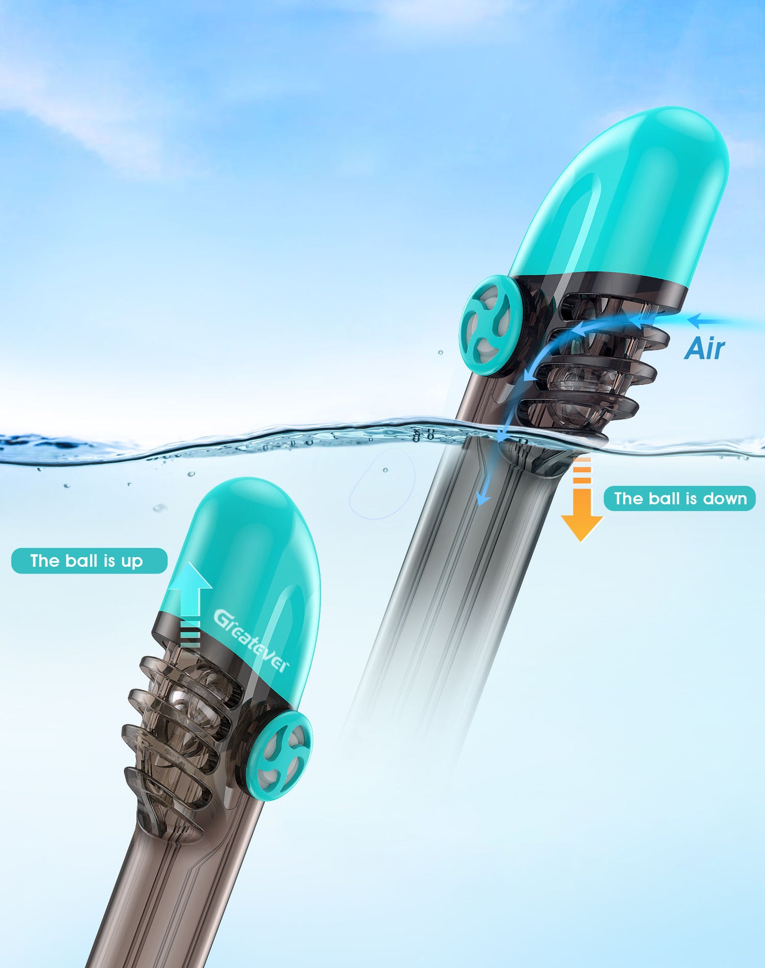 Floating ball goes up and blocks the air inlet, that prevents water from entering the mask.