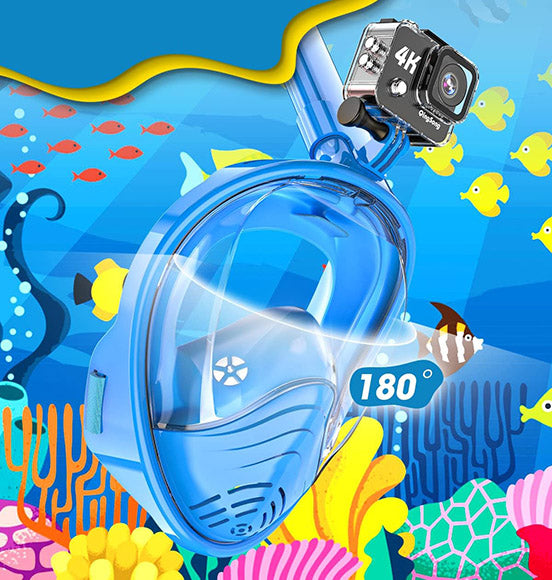 Support GoPro Camera mount, and with 180 degree viewing angle, improved your view underwater and enjoy your amazing snorkeling trip.