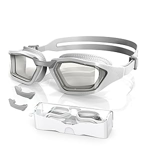 - 【Universeller Komfort mit anpassbarer Passform】 Diese Schwimmbrille für erwachsene Frauen, Männer und Jugendliche ist für alle Gesichtsformen geeignet und verfügt über ein verstellbares Band, einen ergonomischen Nasensteg und drei austauschbare Nasenstücke für eine maßgeschneiderte, druckfreie Passform.