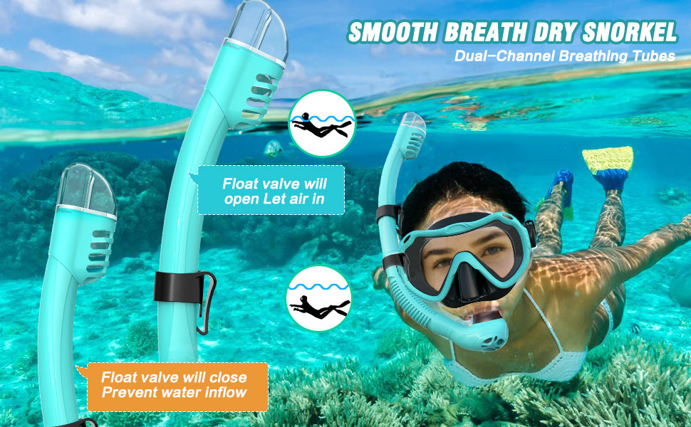 Stable dry float valve prevents water entry and ensures safe, easy breathing for beginners. -