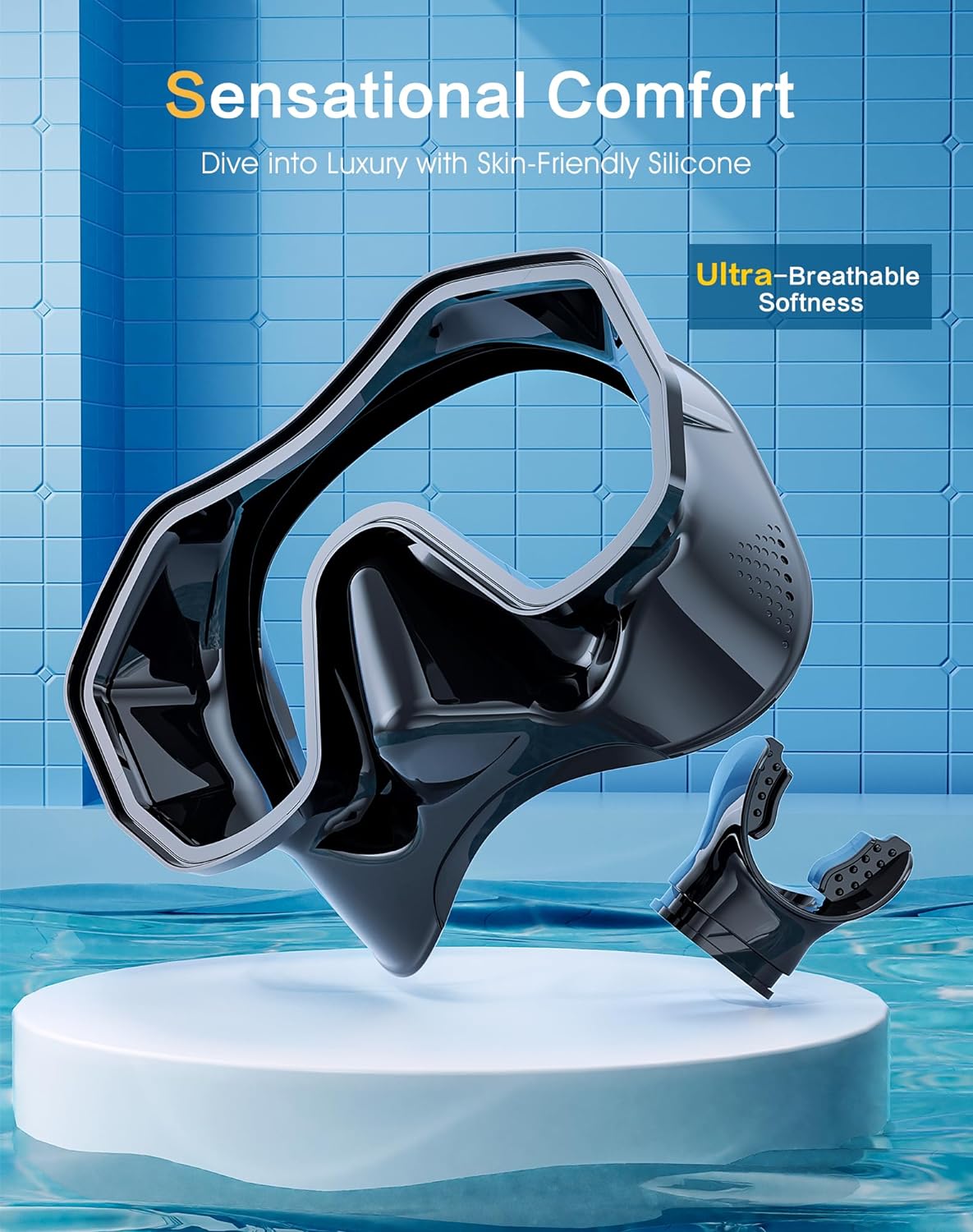 Die Tauchmaske besteht aus weichem, transparentem oder lebensmittelechtem Silikon und ist äußerst bequem. Der Rand aus gesunden Materialien verursacht keine Allergien im Gesicht und lässt sich nach dem Gebrauch leicht reinigen. Sie eignet sich besonders für den Langzeitgebrauch beim Freitauchen, ohne dass ein unangenehmes Gefühl entsteht.