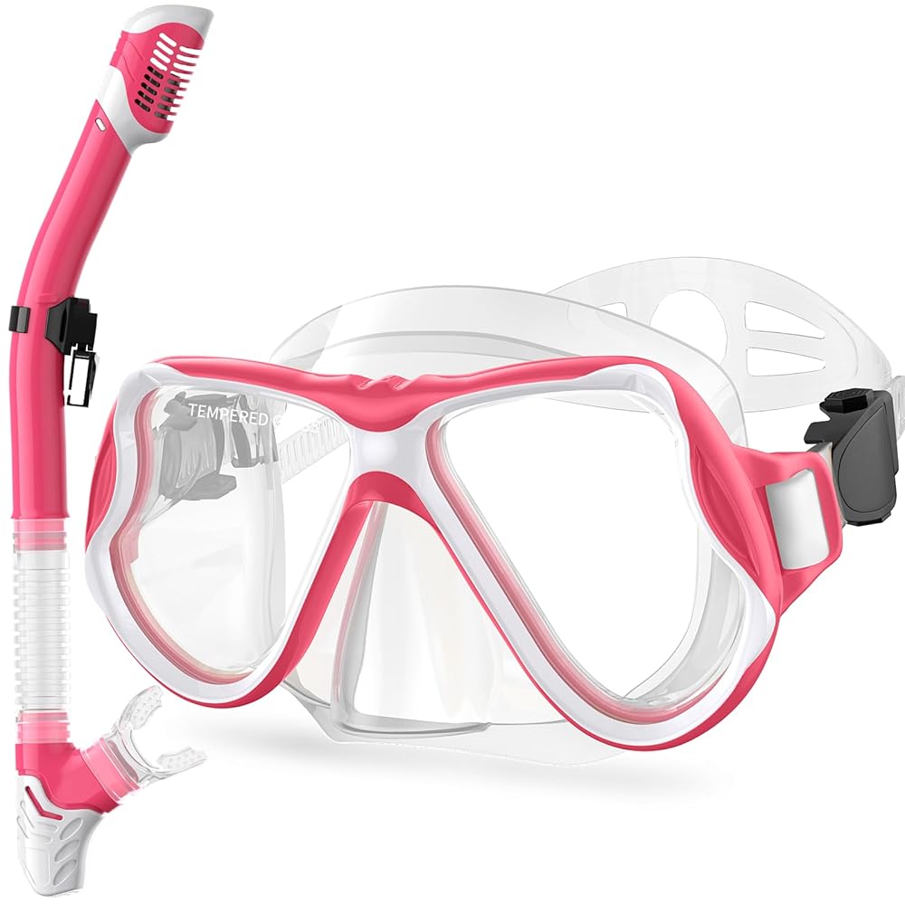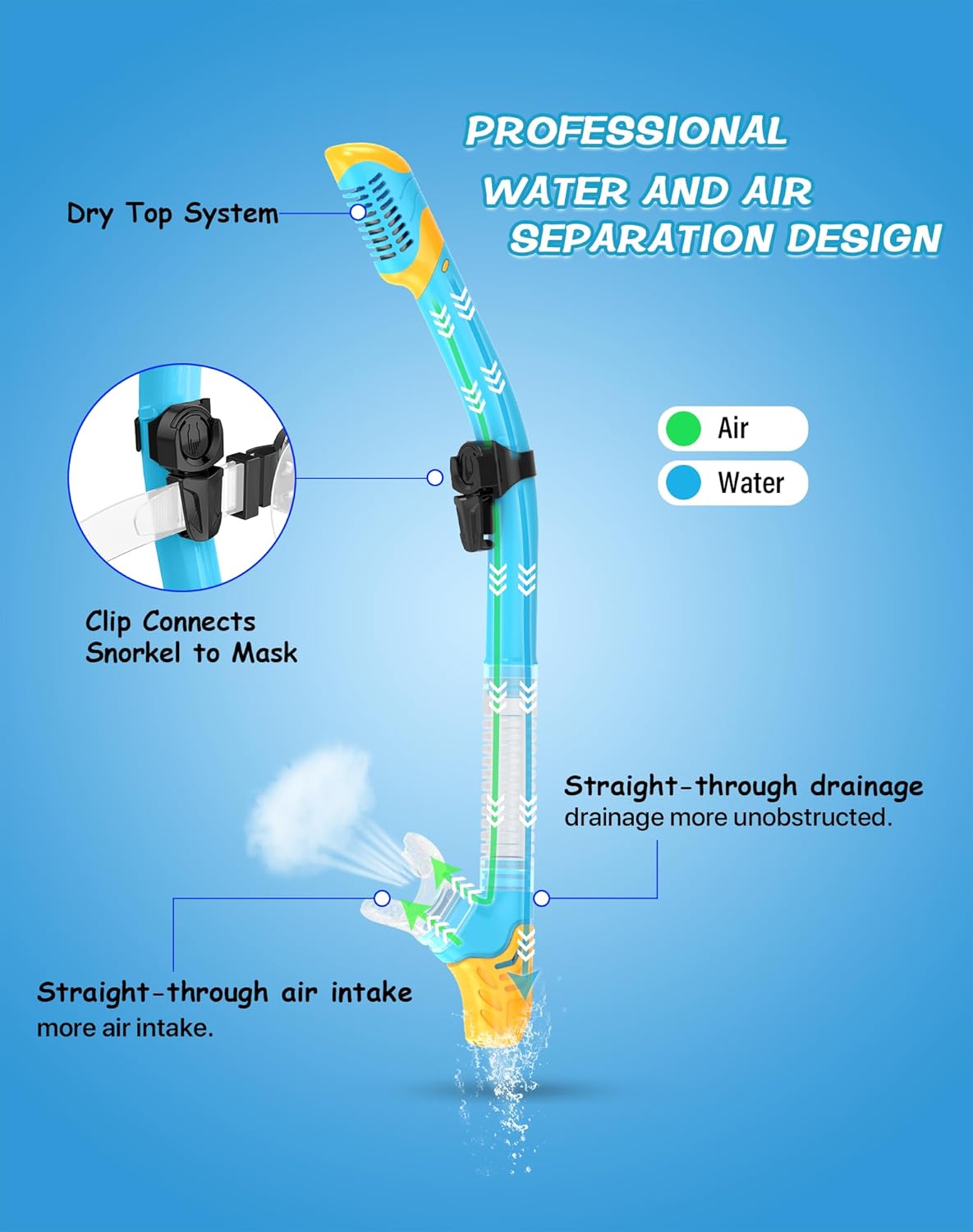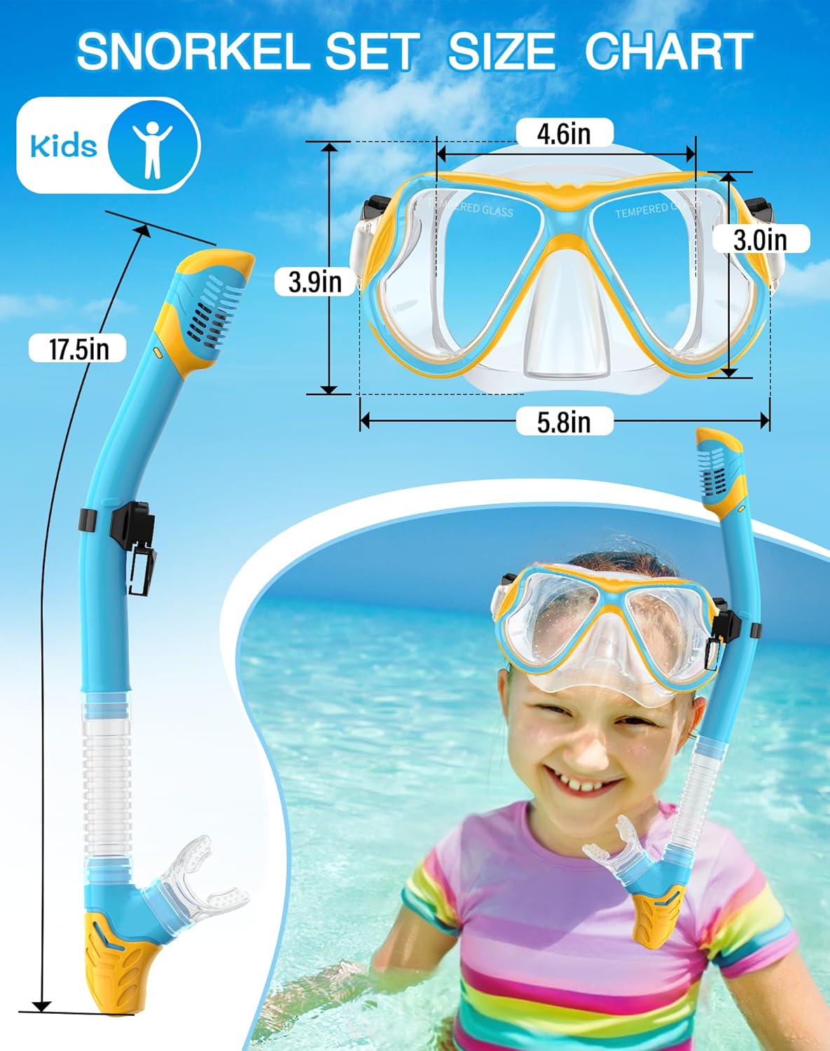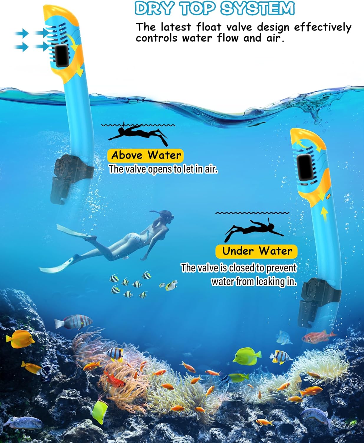- Greatever Kids Dry Snorkel Set - 10 Color Options! Panoramic Wide View Anti-Fog Scuba Diving Mask