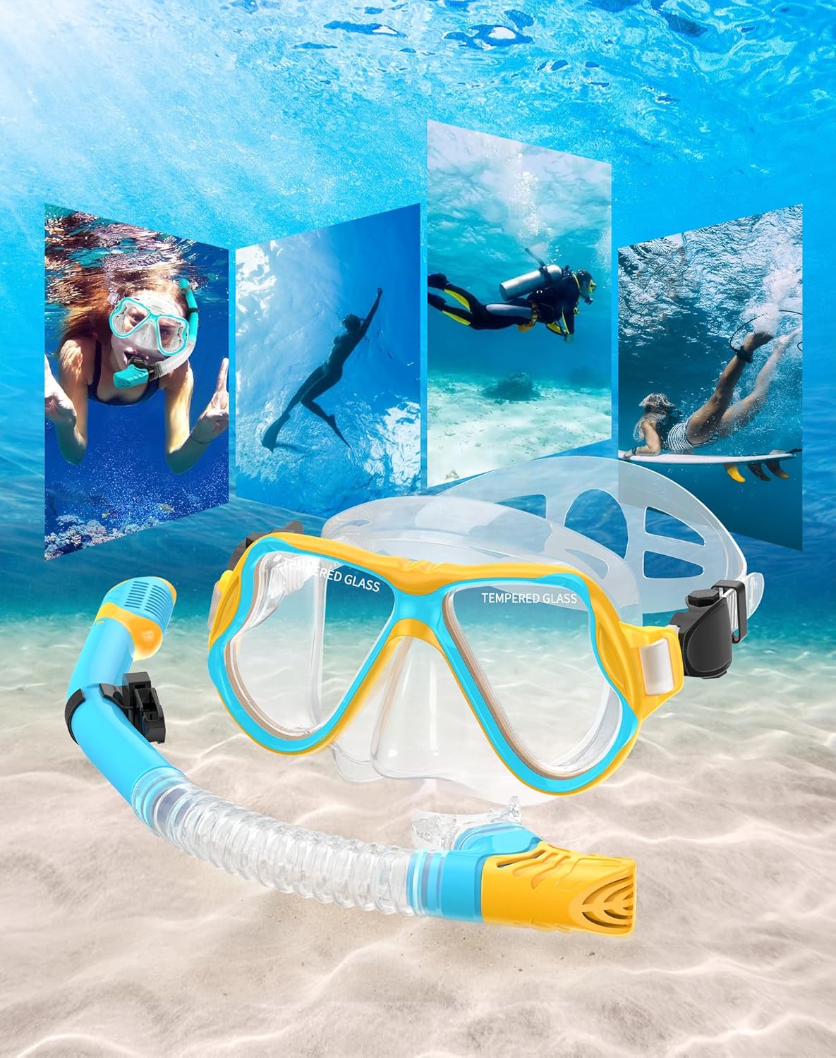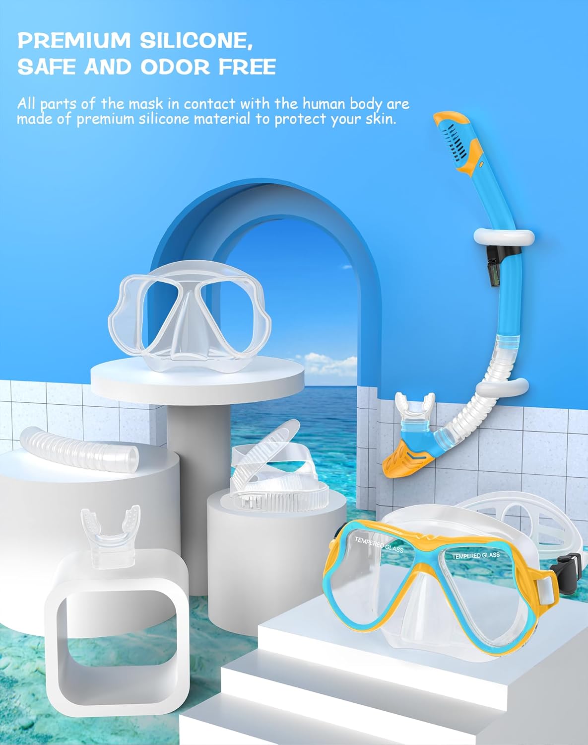 - 【Waterproof Design】The diving mask's skirt is crafted from soft, high-quality silicone, forming a watertight seal against the face. This design guarantees a comfortable and leak-free experience, allowing children to fully enjoy the wonders of the underwater environment.
