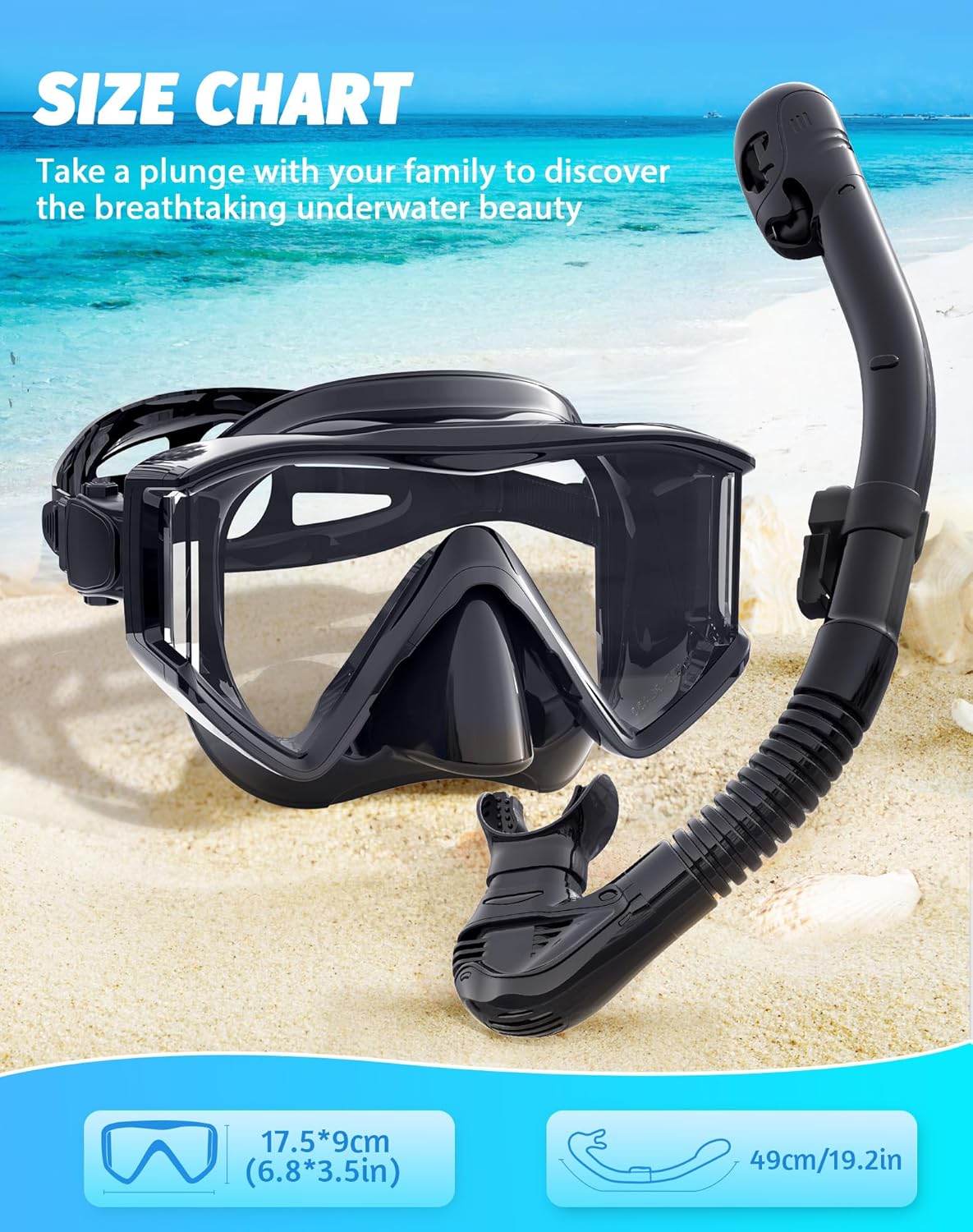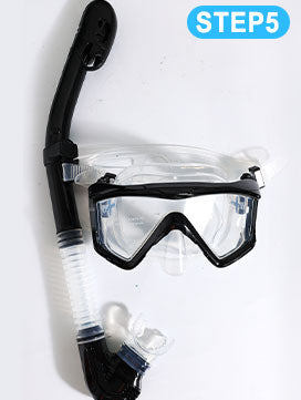 Schnorchelset montiert und Schnorcheln genießen