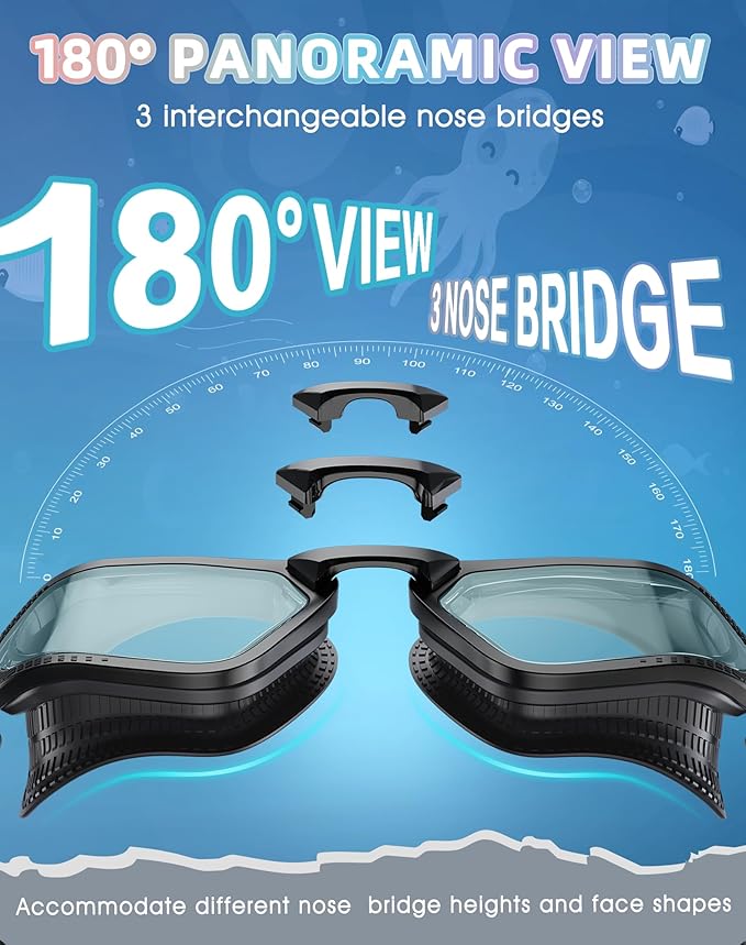 - 【Confort universel avec ajustement personnalisable】Adaptées à toutes les formes de visage, ces lunettes de natation pour femmes adultes, hommes et adolescents sont dotées d'une sangle réglable, d'un pont nasal ergonomique et de trois pièces nasales interchangeables pour un ajustement sur mesure et sans pression.