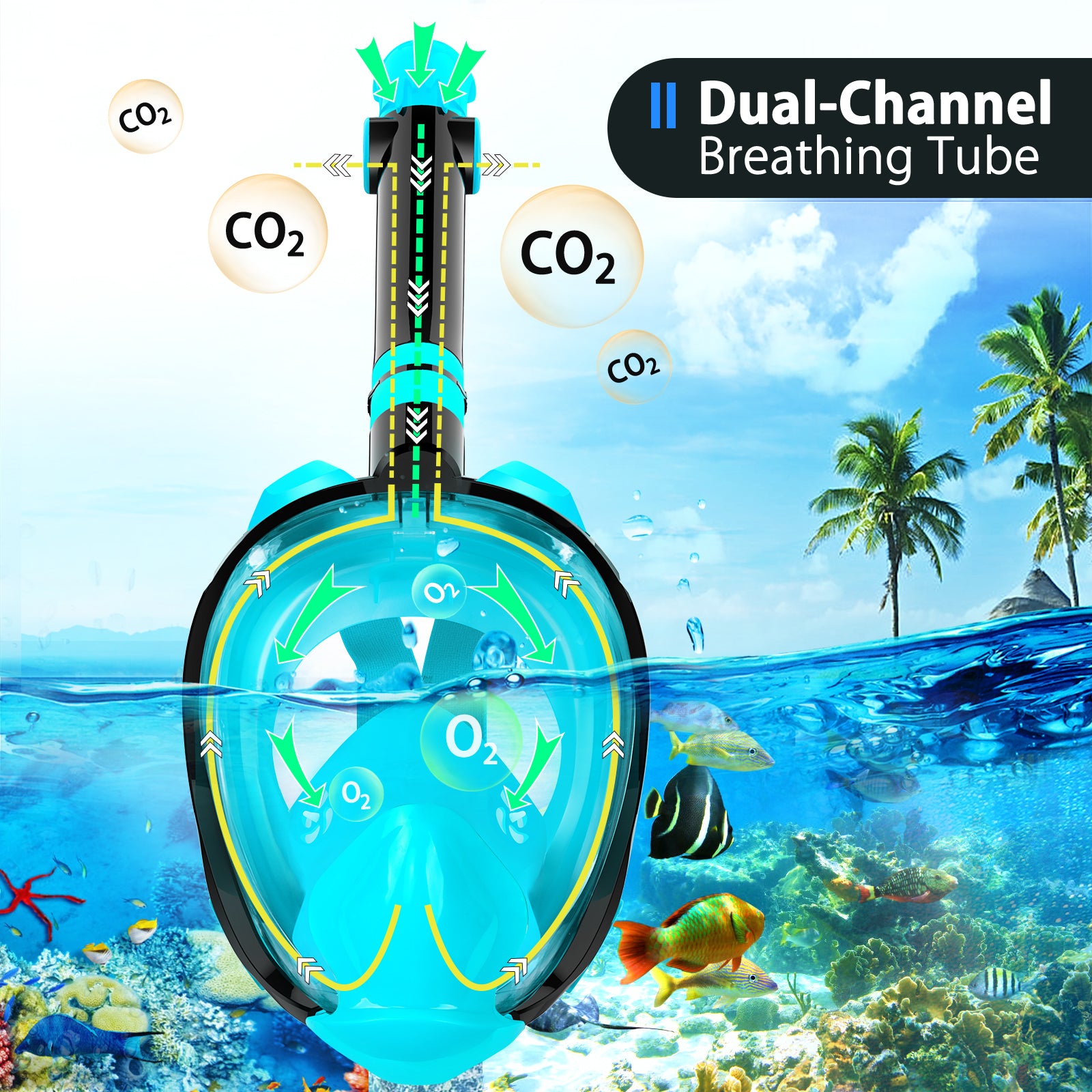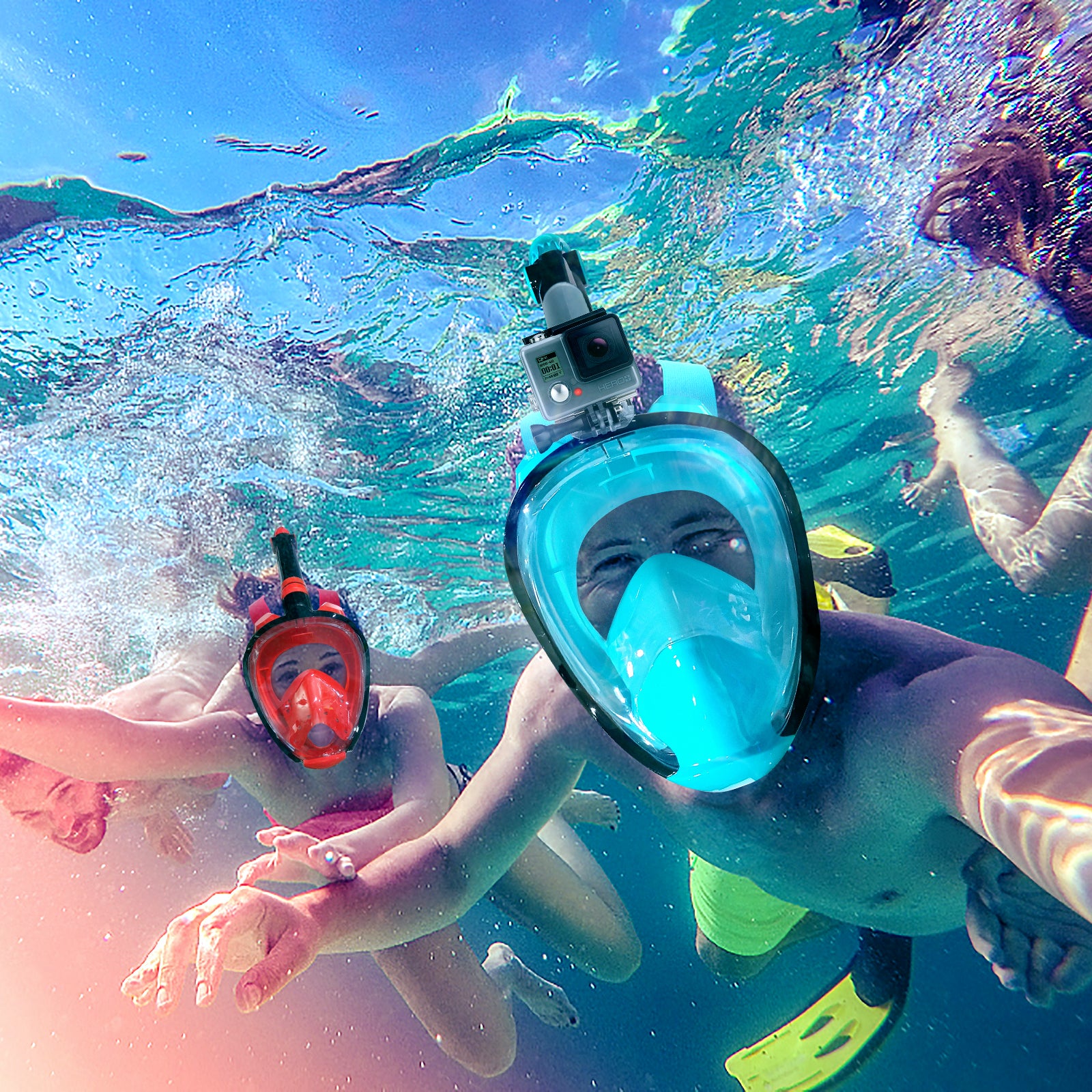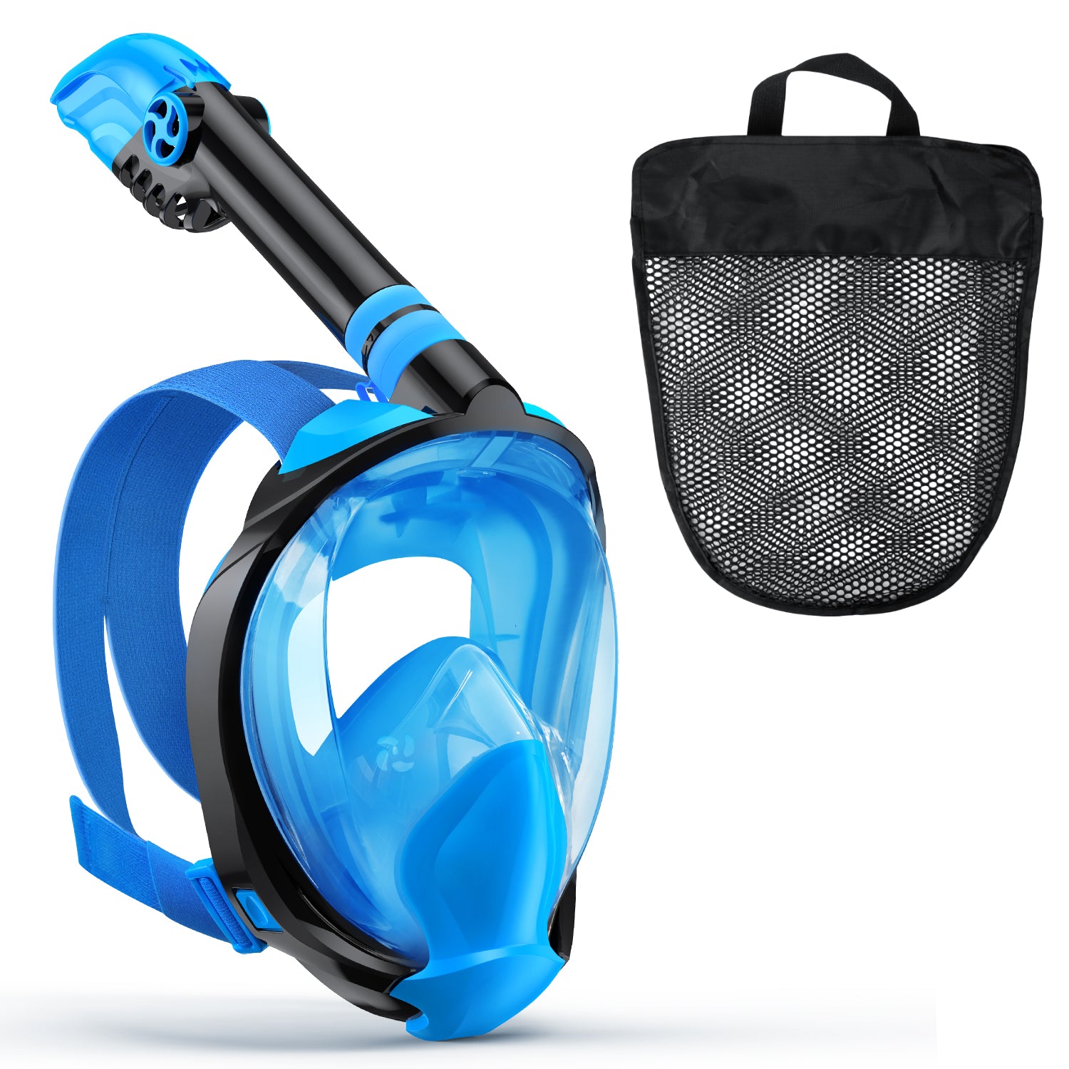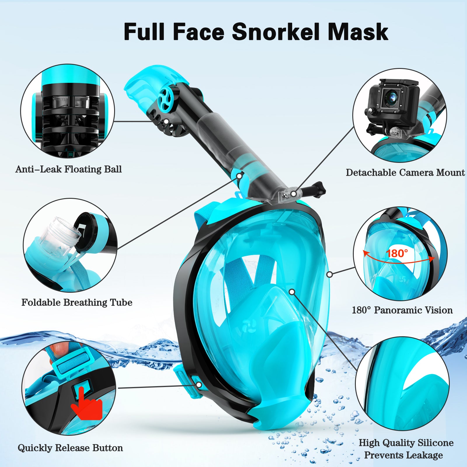 - Adult Full Face Snorkeling Mask, PE Material, with Dry Top Respiratory System, Anti-Fog and Leak-Proof Snorkel, Detachable Camera Mount