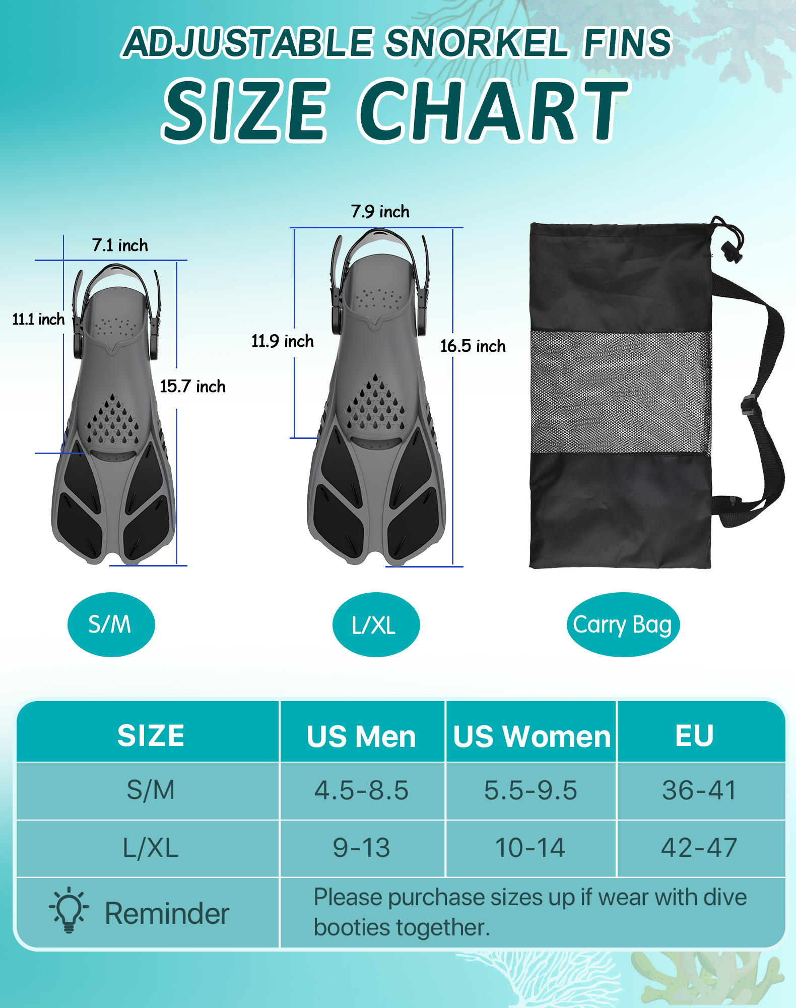 These Greatever Adults Snorkel Fins are expertly designed for maximum flexibility, striking a perfect balance between stiffness and softness.