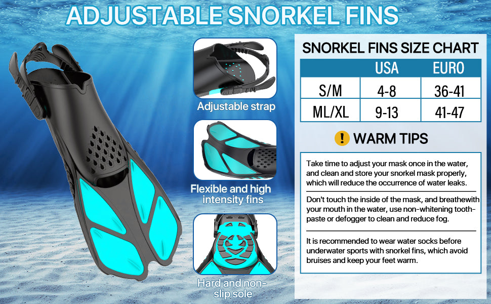 To fit different head shapes, snorkel mask head strap is adjustable. The buckle on 2 sides can help you easier to tighten or losen strap to suitable position even though you are snorkeling.