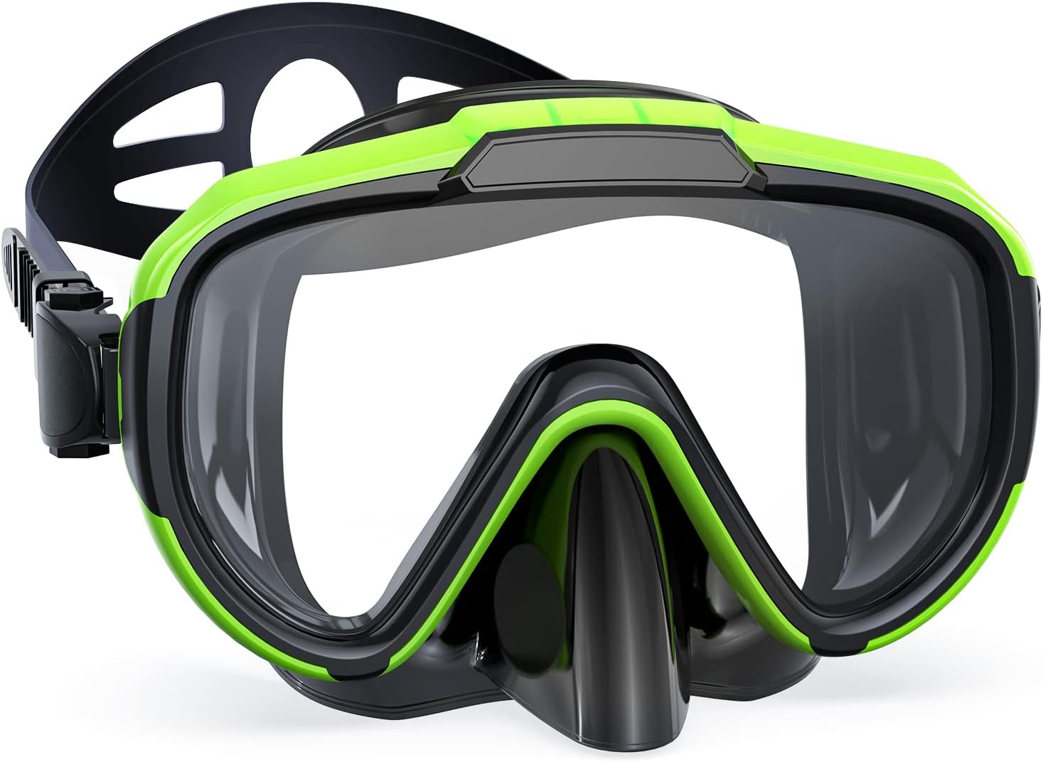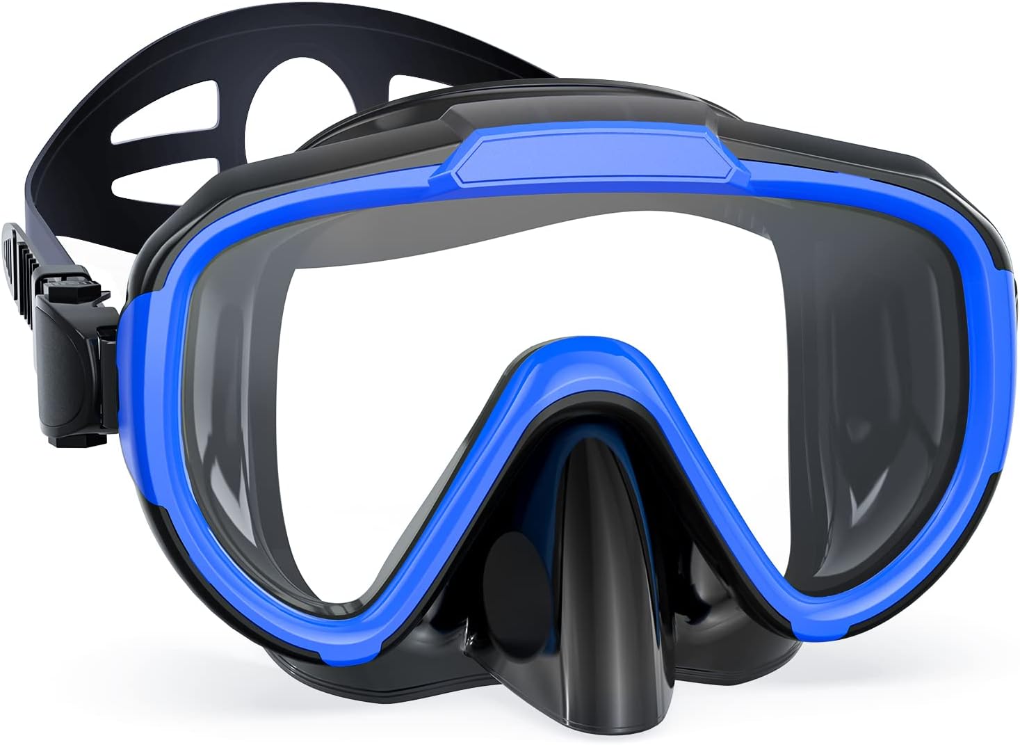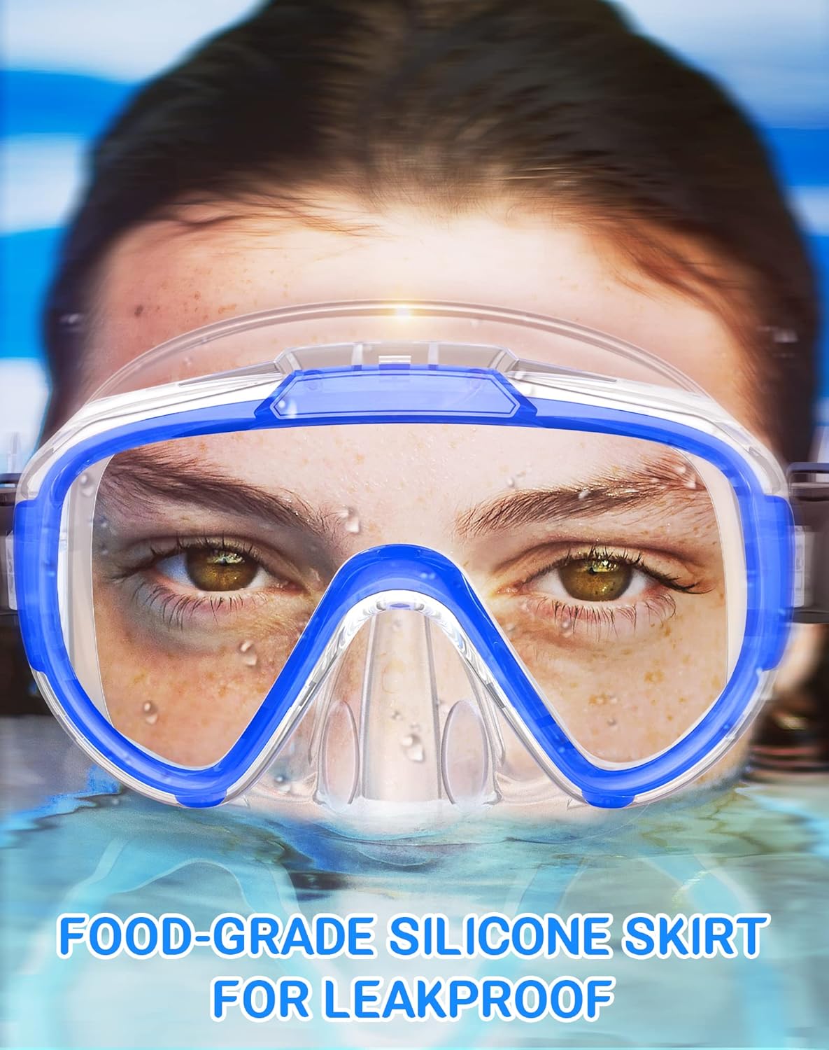Thanks to the premium silicone material and double seal frame shape, swim mask more comfortablely fits the face contour seamlessly and create a watertight seal around the face without leaving skin marks.