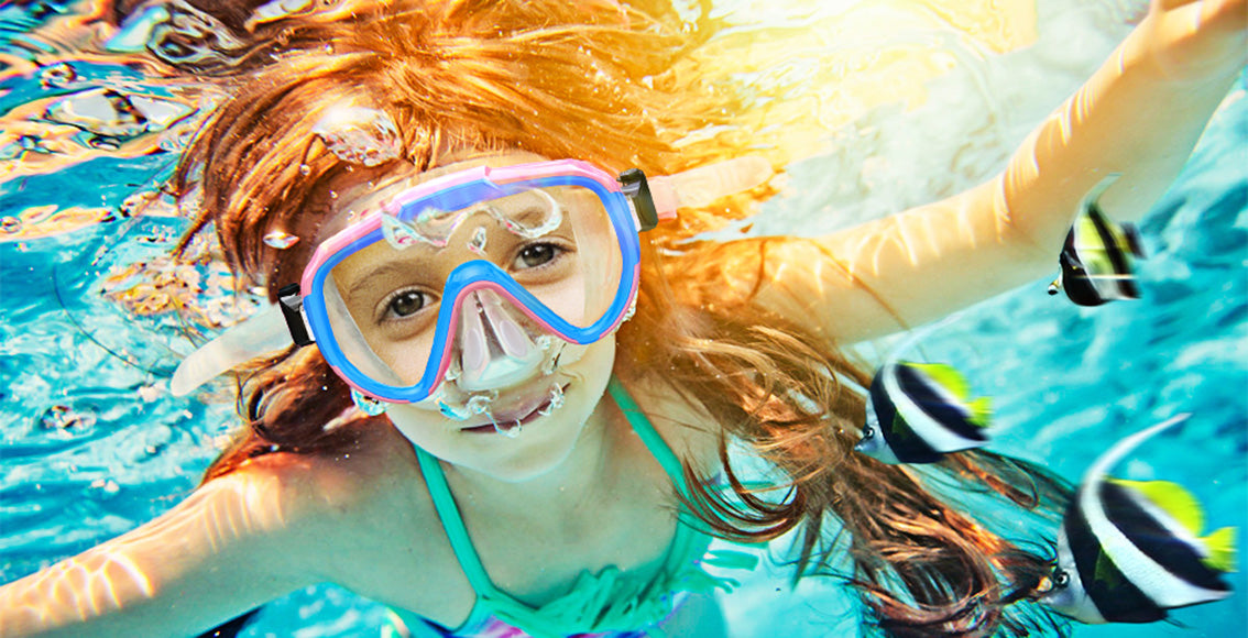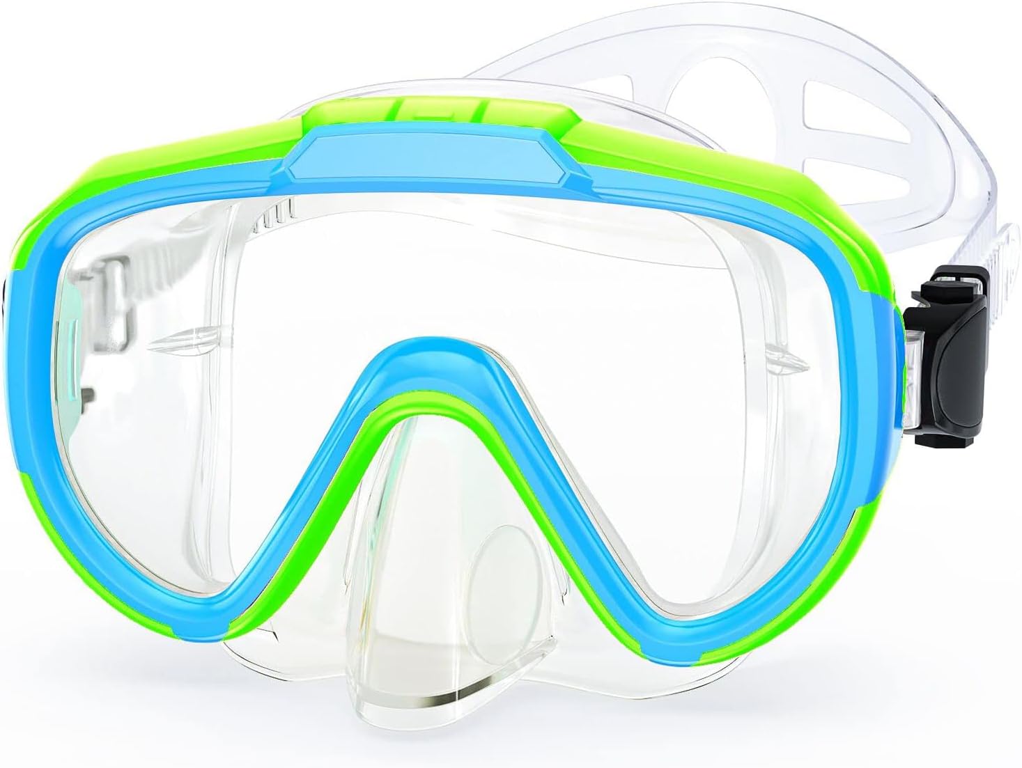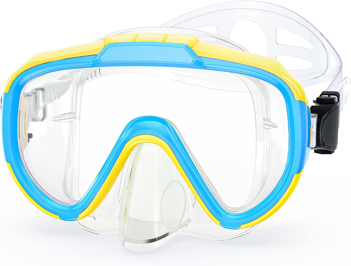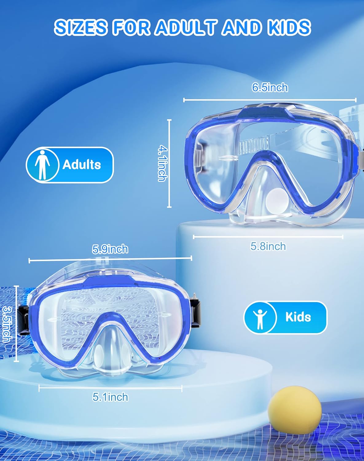 Thanks to the premium silicone material and double seal frame shape, swim mask more comfortablely fits the face contour seamlessly and create a watertight seal around the face without leaving skin marks.