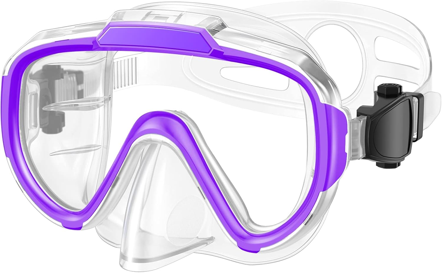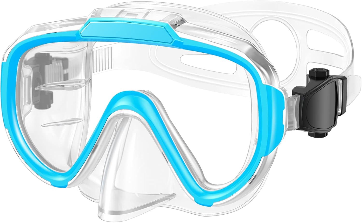 To fit different head shapes, snorkel mask head strap is adjustable. The buckle on 2 sides can help you easier to tighten or losen strap to suitable position even though you are snorkeling.